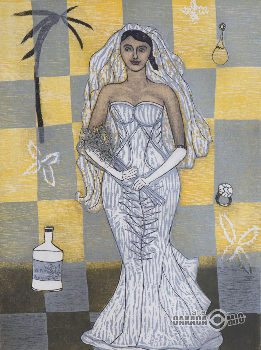 Novia IV, metal y madera, Medida: imagen 39.5 x 29 cm, papel 61.5 x 47.5 cm., 2016