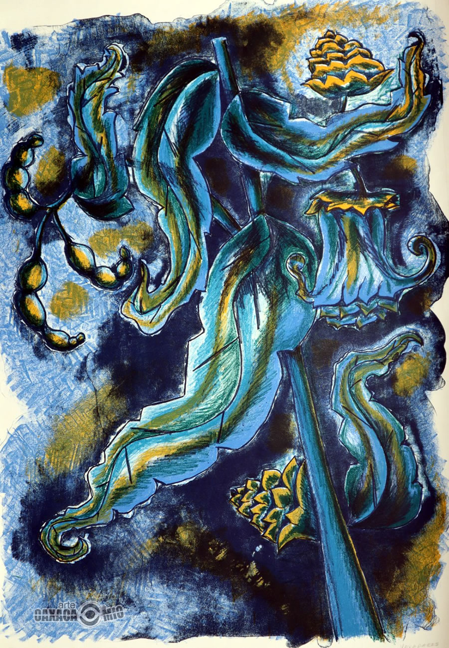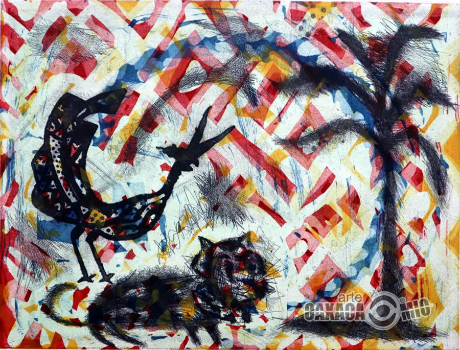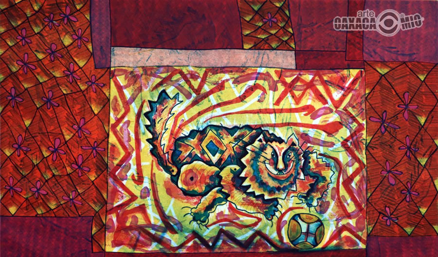 Técnica: Xilografía, oleo sobre tela sobre madera. Medida: 65 x 85 cm.