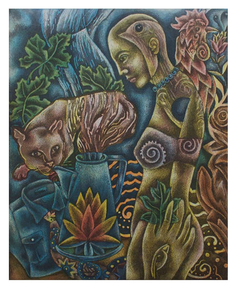 Eddie Martínez es un gran artista que exige en nosotros tener un ojo crítico y educado para poder disfrutarlo. Eddie viene de la zona sur de Oaxaca donde el folklor zapoteco es rico y famoso por la gran diversidad de cultura y gastronomía y esto lo refleja en el uso de diversos colores tan vivos y su composición sumamente rica y variada, su obra lo lleva a ser uno de los grandes pintores de México en la actualidad.